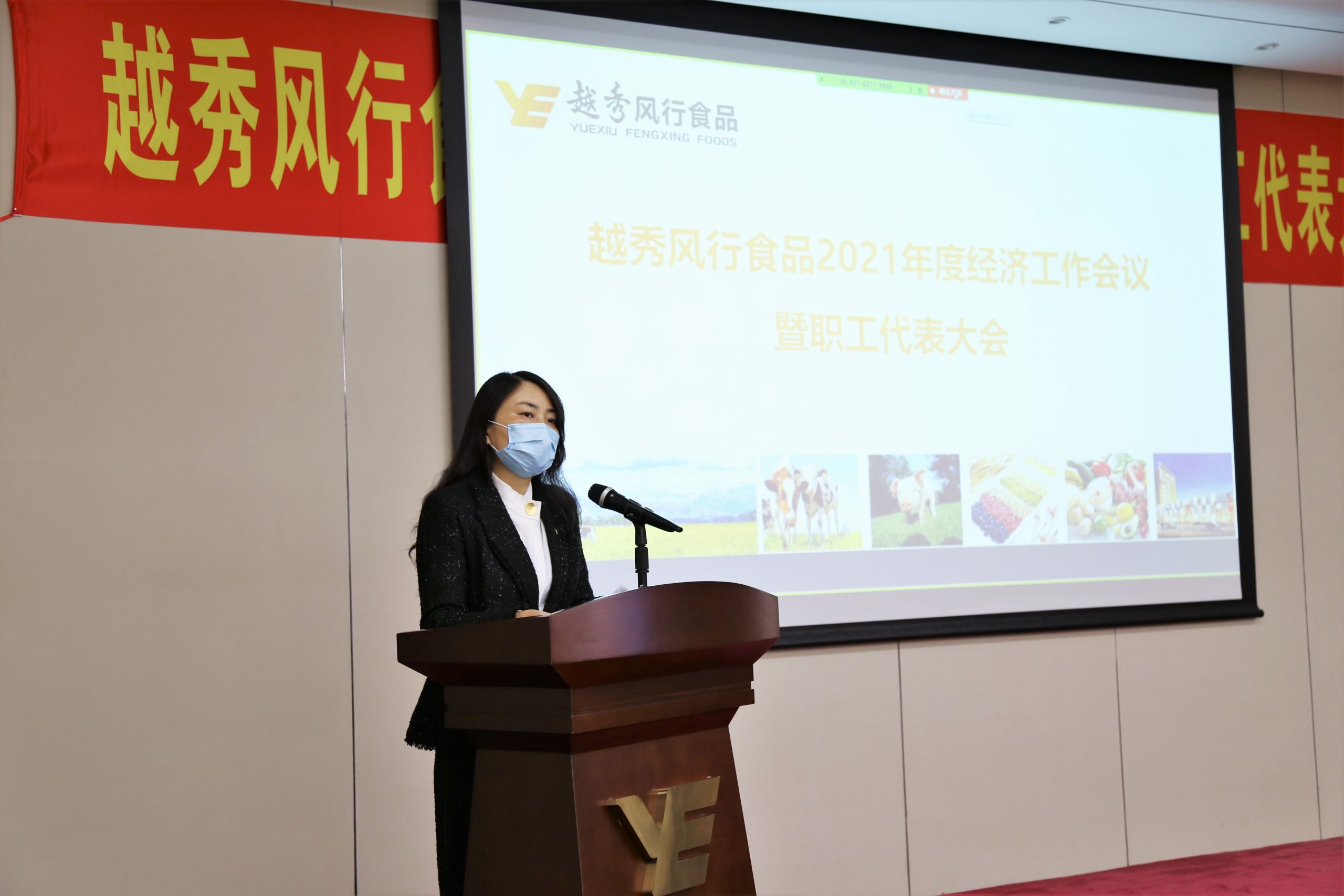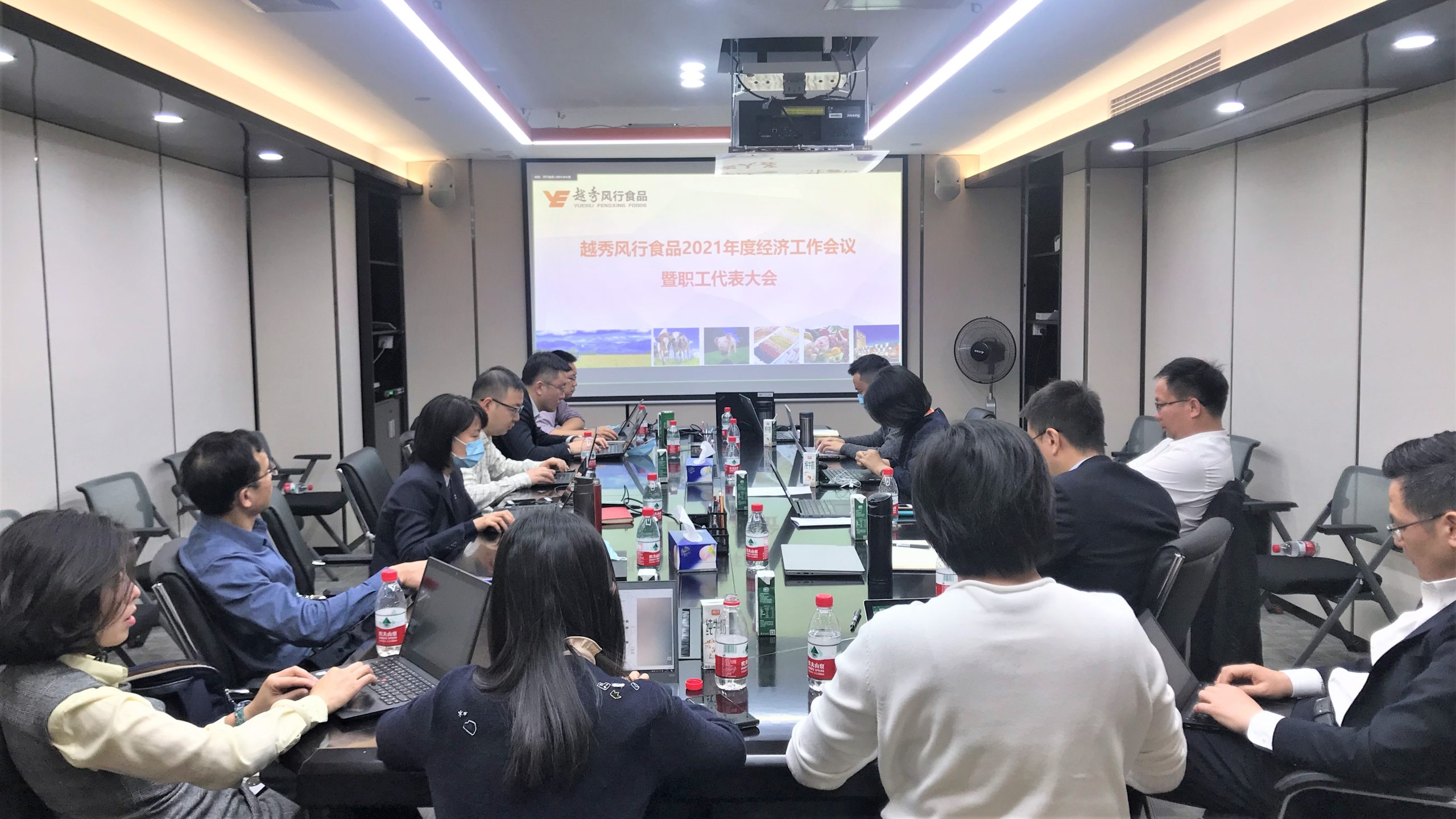 2月1日上午,越秀风行食品2021年度经济工作会议暨职工代表大会在国贸大厦13楼会议室举行。越秀集团党委书记、董事长张招兴,党委副书记、副董事长、总经理叶珊瑚出席会议并讲话,越秀集团领导及有关部门负责人到会指导。越秀风行食品党委书记、董事长林辉新作题为《强意识