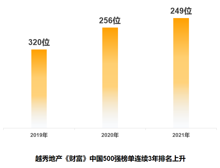 此次在《财富》中国500强排行榜中排位再度上升,证明越秀地产在资本市场的优秀表现依然受到权威认可。未来,越秀地产将继续坚持战略定力,实现高质量可持续稳健发展,不断提升各项业务和运营业绩,不辜负股东及社会各界的信任与期待。