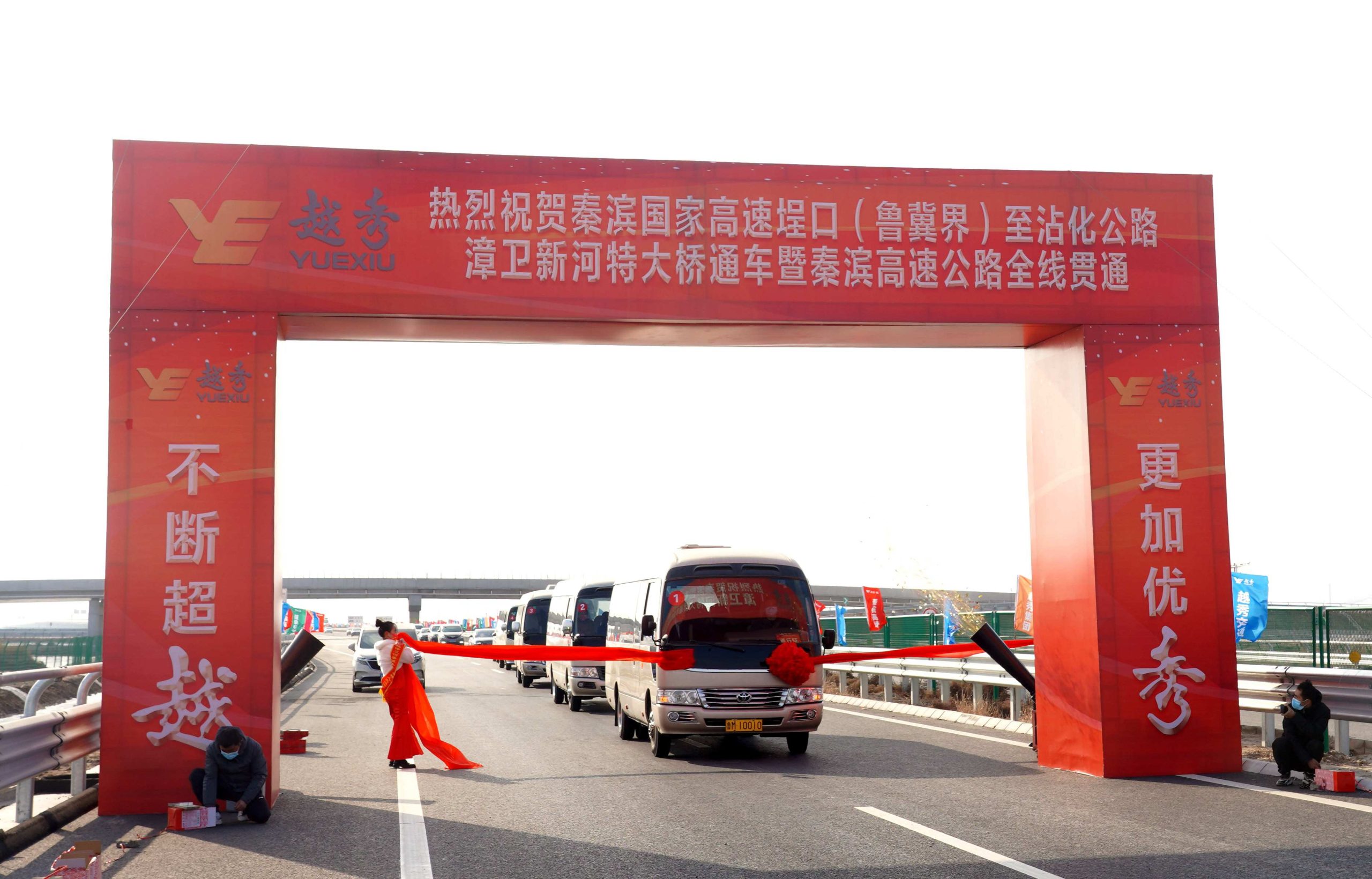 1月20日,越秀秦滨高速埕口(鲁冀界)至沾化公路漳卫新河特大桥通车暨秦滨高速全线贯通活动在秦滨高速北海停车区隆重举行。越秀集团首席资本运营官、越秀交通董事长李锋,越秀集团管理咨询协调委员会主任委员助理,越秀交通党委书记、总经理何柏青等领导出席了通车活动。