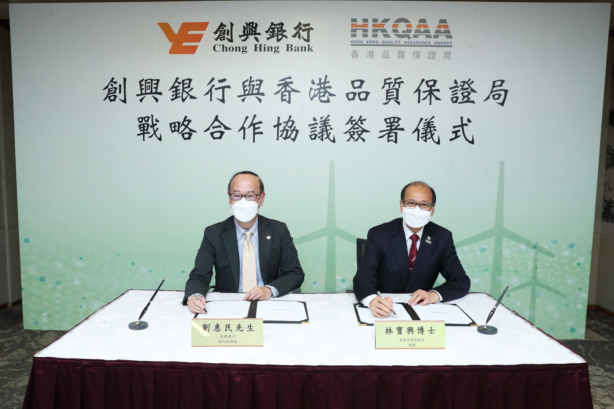 创兴银行有限公司与香港品质保证局于10月5日签署战略合作协议,以支持企业把握绿色金融机遇及对环境负责任的方式,实现可持续增长,并促进经济社会的可持续发展。