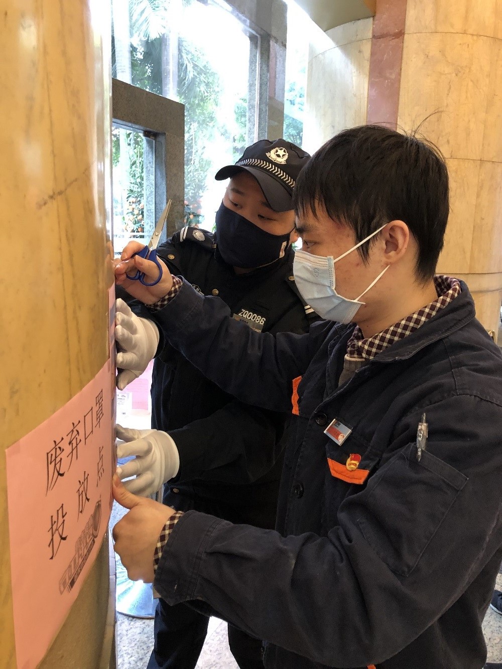 工程設備條線(xiàn)的團員青年在收到團組織的號召時(shí),第一時(shí)間報名參與,迅速組建突擊小分隊,主動(dòng)提前回到崗位,承擔起小區的工程設備消毒處理與日常檢查:對小區的下水道進(jìn)行堵塞檢查并進(jìn)行消毒噴灑,確保下水道不堵塞,防止細菌滋生;專(zhuān)門(mén)設置廢棄口罩投放點(diǎn),防止細菌到處飛揚;對設備進(jìn)行嚴格衛生檢控,認真檢查項目?jì)鹊母唢L(fēng)險衛生黑點(diǎn),不漏一物、不漏一處。此外,在崗位上他們還主動(dòng)佩戴起團徽,亮出共青團身份,積極傳遞正能量。