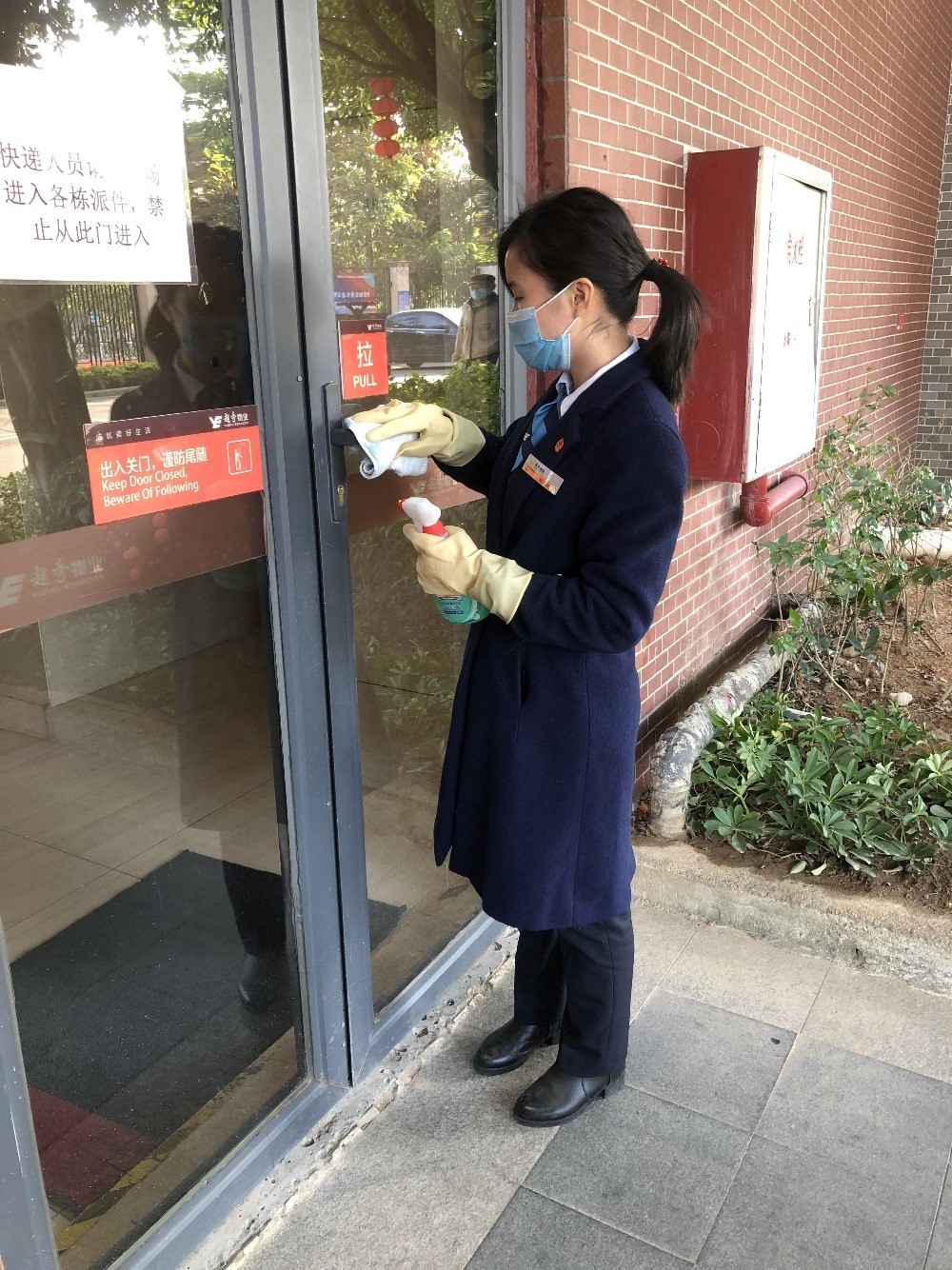 客服小分隊一直堅守崗位,沖鋒在前,哪里有缺位就到哪里去,有序做好各項防控工作:在小區的出入口對來(lái)往的人員進(jìn)行體溫測量、向業(yè)主發(fā)放預防病毒宣傳指南、定時(shí)按規程對小區公共場(chǎng)所消毒,以實(shí)際行動(dòng)將病毒拒之門(mén)外。面對日益嚴峻的疫情,盡管她們已連續工作多日但也毫無(wú)怨言。