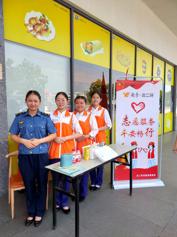 每逢節假日,越秀交通志愿服務(wù)分隊總是第一時(shí)間帶上應急藥品,堅守在服務(wù)區。他們平時(shí)在公司學(xué)習文明服務(wù)禮儀,學(xué)習應急處置,在志愿服務(wù)時(shí)更好地為有需要的過(guò)往司乘人員服務(wù),展現高速志愿者最亮麗的風(fēng)采,他們用堅守詮釋責任與擔當。自今年成立以來(lái),共計組織240余人次參加服務(wù)區志愿服務(wù),服務(wù)時(shí)長(cháng)累計約4800小時(shí),服務(wù)過(guò)往司乘約2萬(wàn)人次,為司乘人員指引路況萬(wàn)余人次、提供應急藥品1200余次、協(xié)助車(chē)主換輪胎30余次。志愿者服務(wù)隊樂(lè )于奉獻、特別能服務(wù)的精神與行動(dòng),有效提升改善了司乘人員行走高速的體驗。